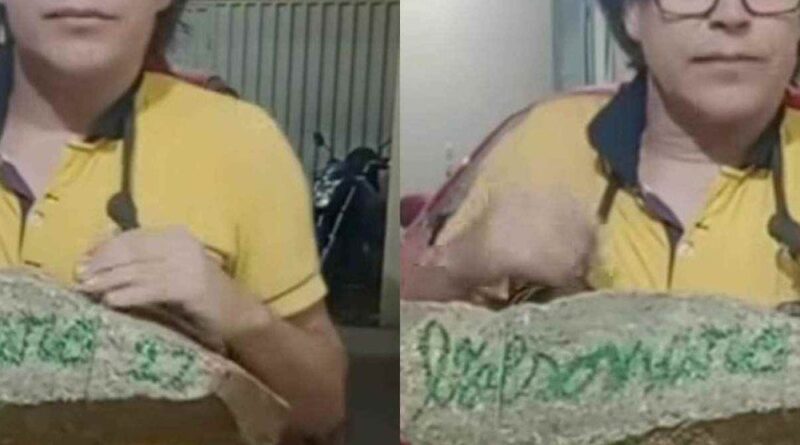 Nas imagens, o simpatizante bolsonarista declara que a pedra deveria trazer o nome de Jair Bolsonaro escrito na superfície e descreve o ato como oferta pessoal. “É um sacrifício, já estou acordando torto, mas é um sacrifício em prol da liberdade do nosso presidente Jair Bolsonaro”, afirma. Ele diz ter recebido a orientação durante uma vigília religiosa, quando um pastor teria pedido que fiéis carregassem pedras de 20 a 25 quilos com o nome do ex-presidente, presas ao pescoço.