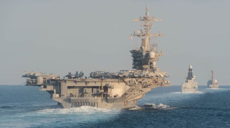 Entre os meios disponíveis estão o porta-aviões USS Abraham Lincoln, destróieres como o USS Bainbridge, o USS Thomas Hudner, o USS Rafael Peralta e o USS Spruance, além do Grupo Anfíbio de Prontidão Tripoli, com o USS Tripoli e os navios de assalto anfíbio USS New Orleans e USS Rushmore. Essa frota combina capacidade de ataque aéreo, defesa antimíssil e operações de abordagem a cargueiros suspeitos.