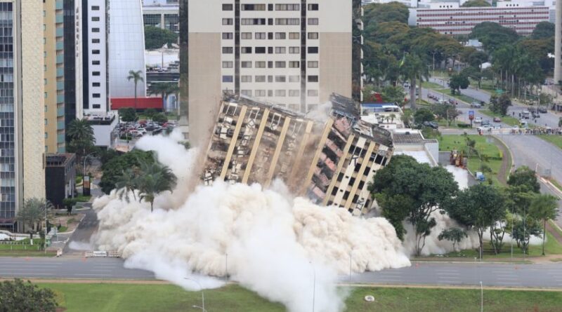 O Governo do Distrito Federal implode neste domingo (25.jan.2026) o Torre Palace Hotel, primeiro hotel de luxo de Brasília. A demolição controlada encerra um capítulo simbólico da história da capital e abre espaço para novos projetos na região central.