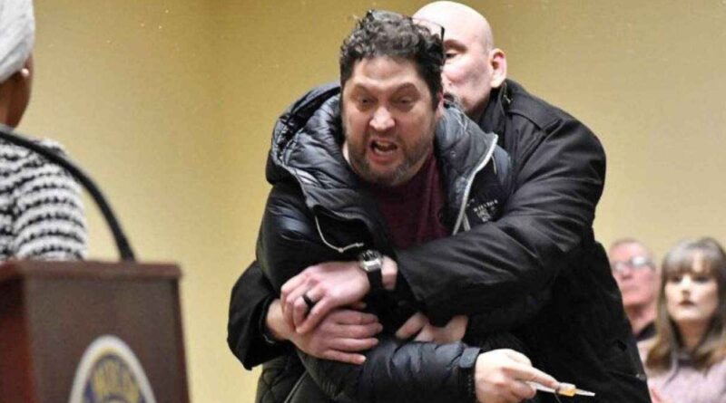 É nesse momento que Kazmierczak, ainda sentado na primeira fila, se levanta, ergue a seringa e lança o líquido em direção à parlamentar. Ao ser levado para fora por agentes de segurança, ele afirma que Omar estaria “nos colocando uns contra os outros”, sem explicar a acusação. A polícia o detém e o acusa formalmente de agressão de terceiro grau, crime que pode resultar em prisão e multa.