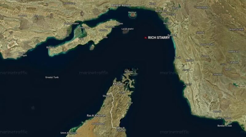 O Rich Starry deixa o Golfo Pérsico após zarpar de Hamriyah, nos Emirados Árabes Unidos, e segue pela faixa de mar mais sensível do comércio global de energia. A passagem ocorre uma semana depois do início do bloqueio norte-americano a navios que entram ou saem de portos iranianos, anunciado em 13 de abril pelo Comando Central dos EUA (Centcom).