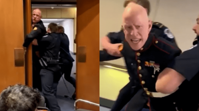 Veterano tem braço quebrado ao protestar contra guerra ao Irã no Senado